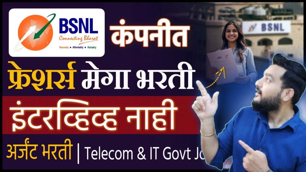 BSNL Senior Executive Trainee Recruitment 2026 ही इंजिनिअरिंग आणि फायनान्स क्षेत्रातील उमेदवारांसाठी एक उत्कृष्ट सरकारी नोकरीची संधी आहे. चांगला पगार, स्थिर करिअर, प्रमोशन आणि देशातील नामांकित PSU मध्ये काम करण्याची संधी या भरतीत मिळते. पात्र उमेदवारांनी ही संधी नक्कीच गमावू नये.