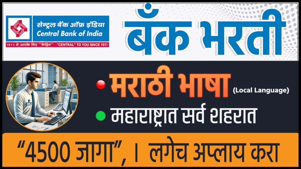Central Bank of India (CBI) ने 2025–26 आर्थिक वर्षासाठी 4500 Apprentice पदांची भरती जाहीर केली आहे. ही संधी पदवीधरांसाठी बँकिंग क्षेत्रात प्रवेश करण्याचे सुवर्णसर, ज्यात विद्यार्थ्यांना एक वर्षाचा व्यावहारिक प्रशिक्षणाचा अनुभव मिळतो