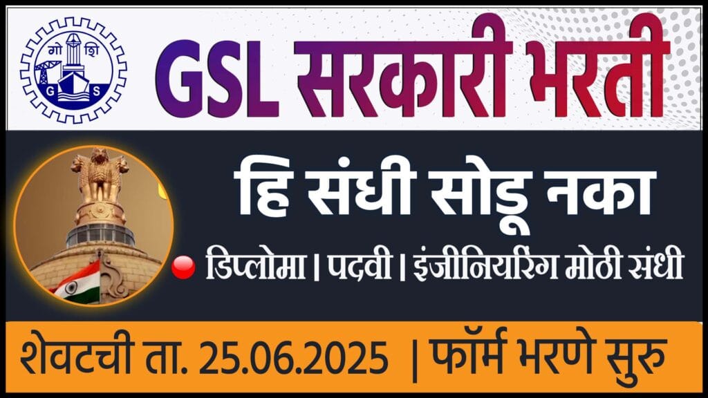 सरकारी अप्रेंटिसशिपची वाट पाहणाऱ्या उमेदवारांसाठी एक मोठी संधी आहे! Goa Shipyard Limited (GSL) ने Apprenticeship 2025