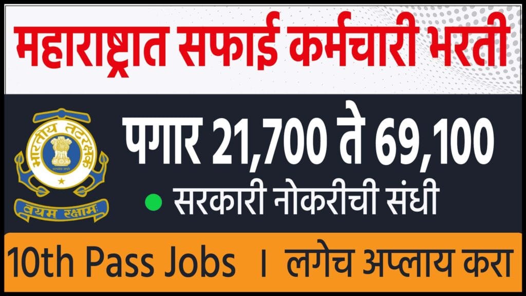 The Commander, Coast Guard Maharashtra Region, Post Box No. xx, [क्षेत्राचे नाव], महाराष्ट्र स्वाक्षरीसहित लिफाफ्यावर: “APPLICATION FOR THE POST OF ENROLLED FOLLOWER (SWEEPER/SAFAIWALA)” स्पष्ट लिहा