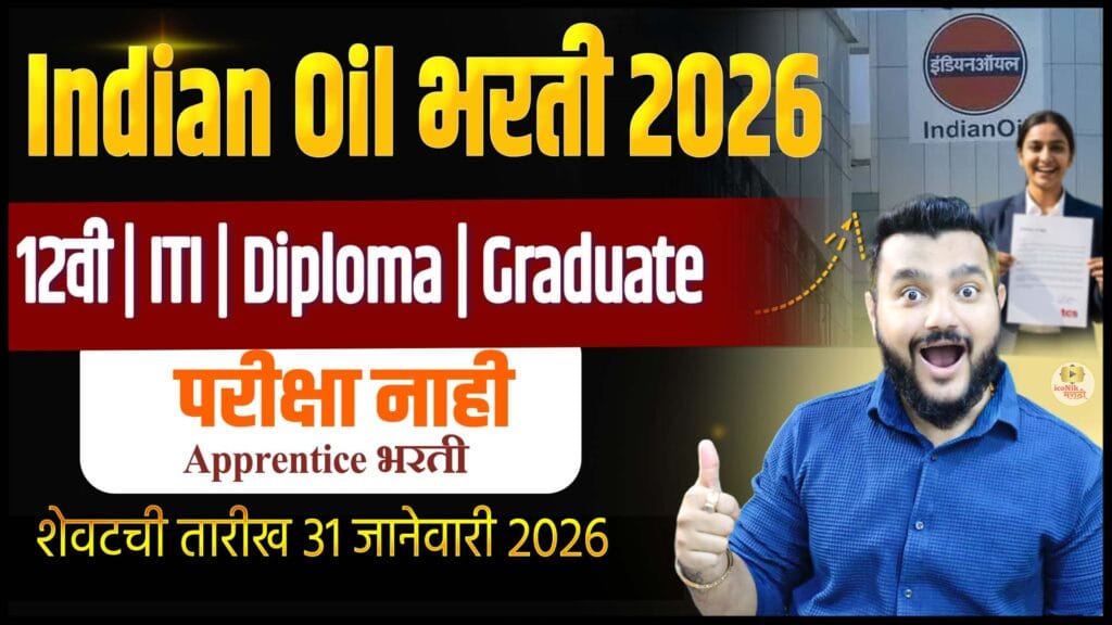 IOCL Apprentice Bharti 2026 ही Freshers आणि तरुण उमेदवारांसाठी अत्यंत उपयुक्त आणि सुरक्षित संधी आहे. कोणतीही परीक्षा नाही, थेट मेरिटवर निवड, केंद्र सरकारची नामांकित कंपनी आणि प्रत्यक्ष अनुभव मिळवण्याची संधी – त्यामुळे ही अप्रेंटिसशिप करिअरसाठी मजबूत पायरी ठरू शकते.