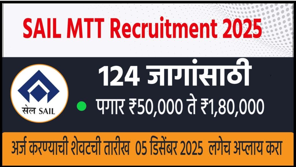 SAIL MTT Recruitment 2025 | 124 मॅनेजमेंट ट्रेनी टेक्निकल भरती | पात्रता, पगार, परीक्षा पॅटर्न – संपूर्ण माहिती